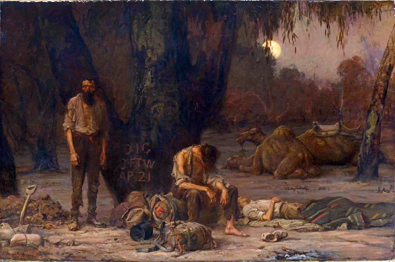 [Fig. 2] John Longstaff, Arrival of Burke, Wills and King at the deserted camp at Cooper's Creek, Sunday evening, 21st April 1861, National Gallery of Victoria, http://www.ngv.vic.gov.au/explore/collection/work/5865/.