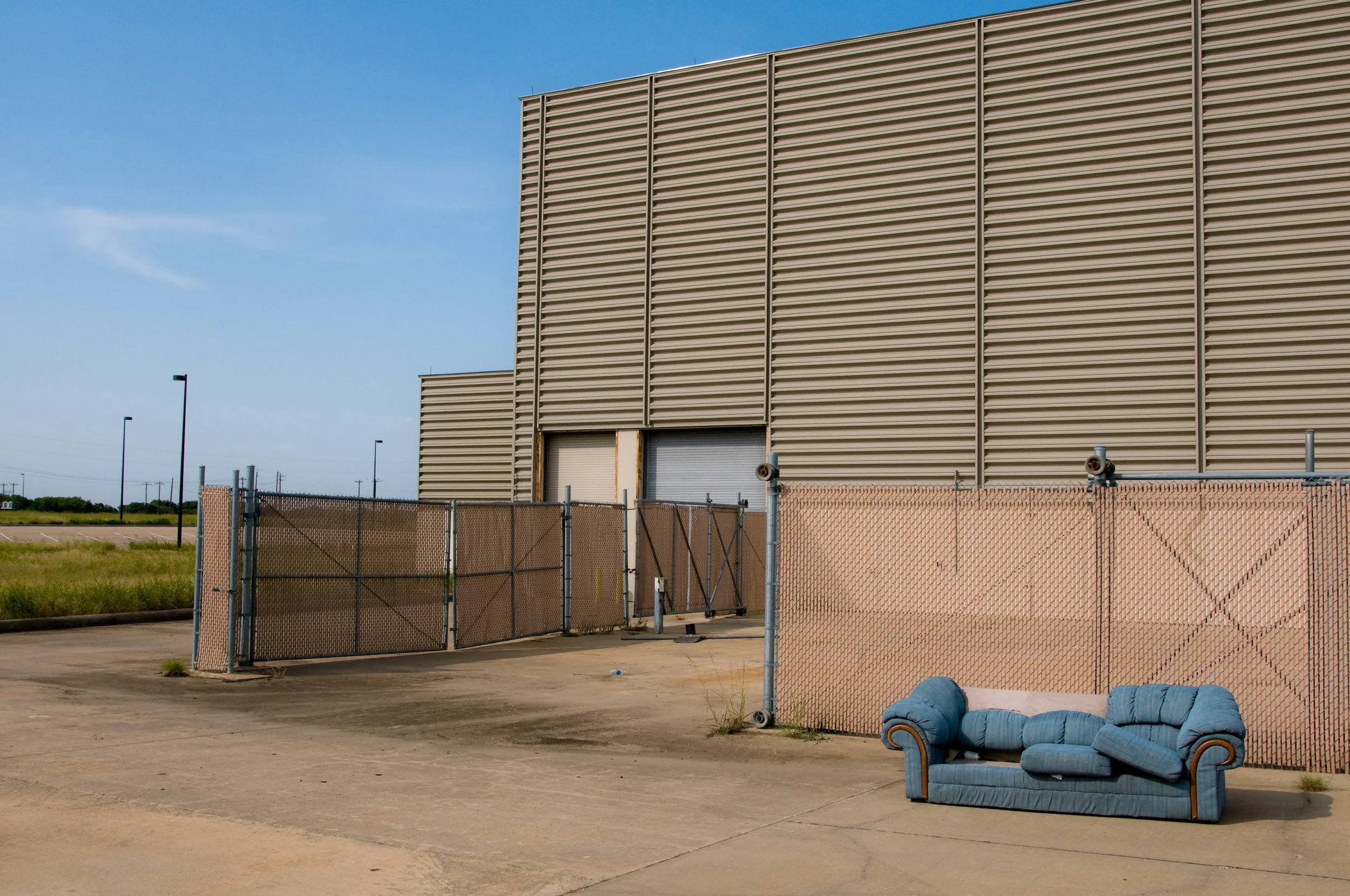 [Fig. 3] The Desertron, deserted. The now-abandoned SSC site in Waxahatchie, TX, attracts urban explorers (and well-loved couches). Photo by Nick Russell, https://summerofscience.wordpress.com/2009/10/29/whos-afraid-of-the-superconducting-super-collider/.